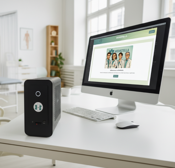Sie erhalten die Medistella AI Box sowie die Installationsdatei für die Medistella App direkt in Ihre Praxis.